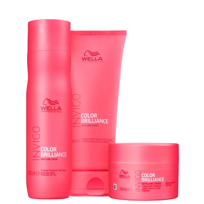 Como UsarKit Wella Professionals Invigo Color Brilliance Trio (3 Produtos)Conselho de AplicaçãoNos fios úmidos, aplique o shampoo e massageie o couro cabeludo. Ao surgir espuma, enxágue completamente e repita o processo se sentir necessário.