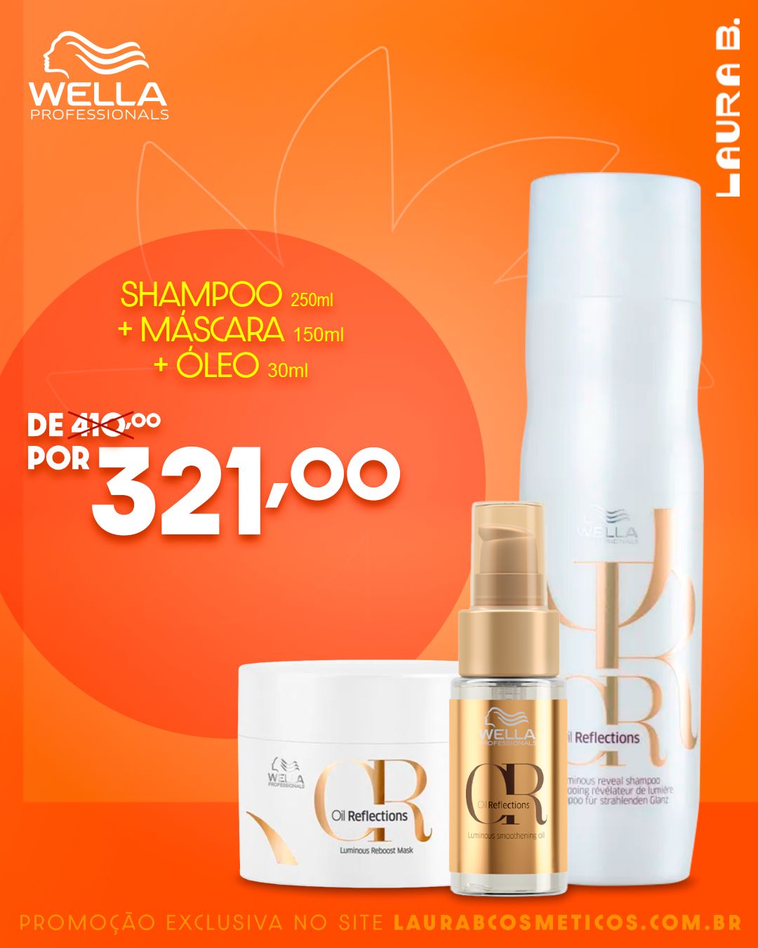 Kit de tratamento capilar. Wella Professionals Oil Reflections proporciona uma explosão de brilho e maciez, sem pesar os fios.